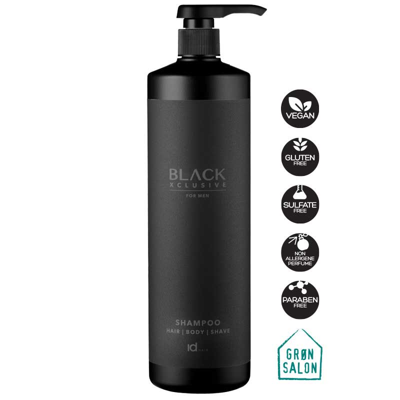 Sampon pentru barbati Total Black XCLUSIVE 1000ml este un sampon hidratant all-in-one pentru par, corp si barba. Contine extract din seminte de chimen negru (Nigella Sativa) si extract de roca vulcanica cu efect regenerant si calmant, glicerina cu efect hidratant si un plus de stralucire. Parul tau este usor de aranjat dupa spalare, iar pielea ramane hidratata si parfumata. Samponul are un parfum vibrant de citrice si mosc. Se poate utiliza si ca spuma de barbierit. Nu contine SLS/SLES.