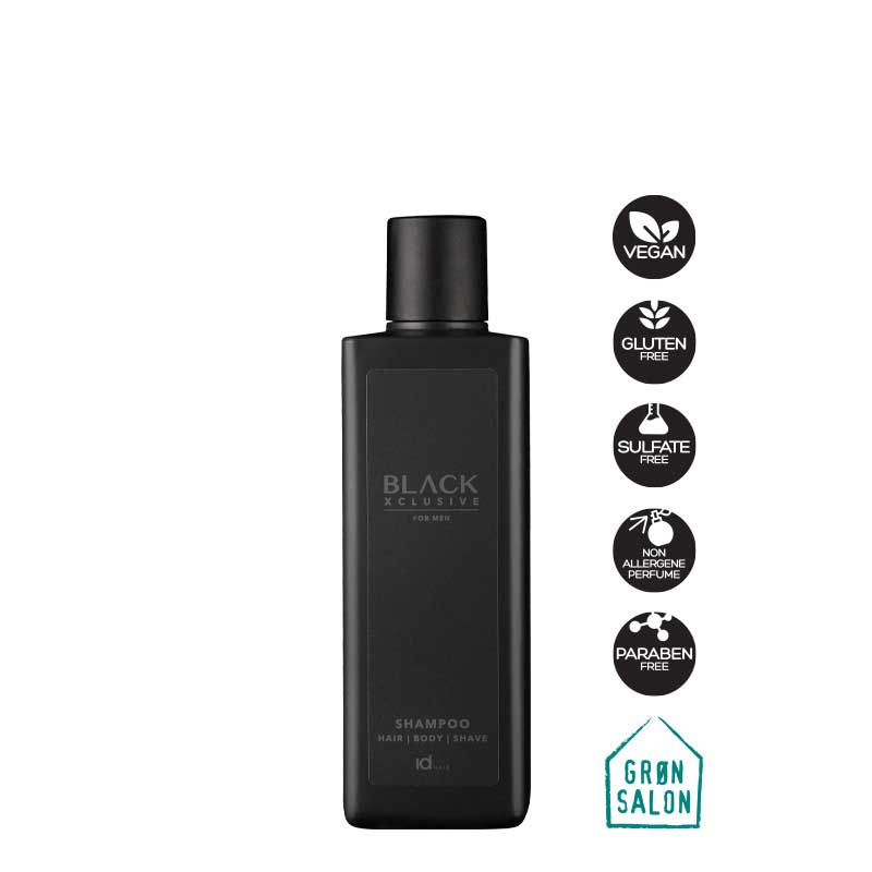 Sampon pentru barbati Total Black XCLUSIVE 250ml este un sampon hidratant all-in-one pentru par, corp si barba. Contine extract din seminte de chimen negru (Nigella Sativa) si extract de roca vulcanica cu efect regenerant si calmant, glicerina cu efect hidratant si un plus de stralucire. Parul tau este usor de aranjat dupa spalare, iar pielea ramane hidratata si parfumata. Samponul are un parfum vibrant de citrice si mosc. Se poate utiliza si ca spuma de barbierit. Nu contine SLS/SLES.